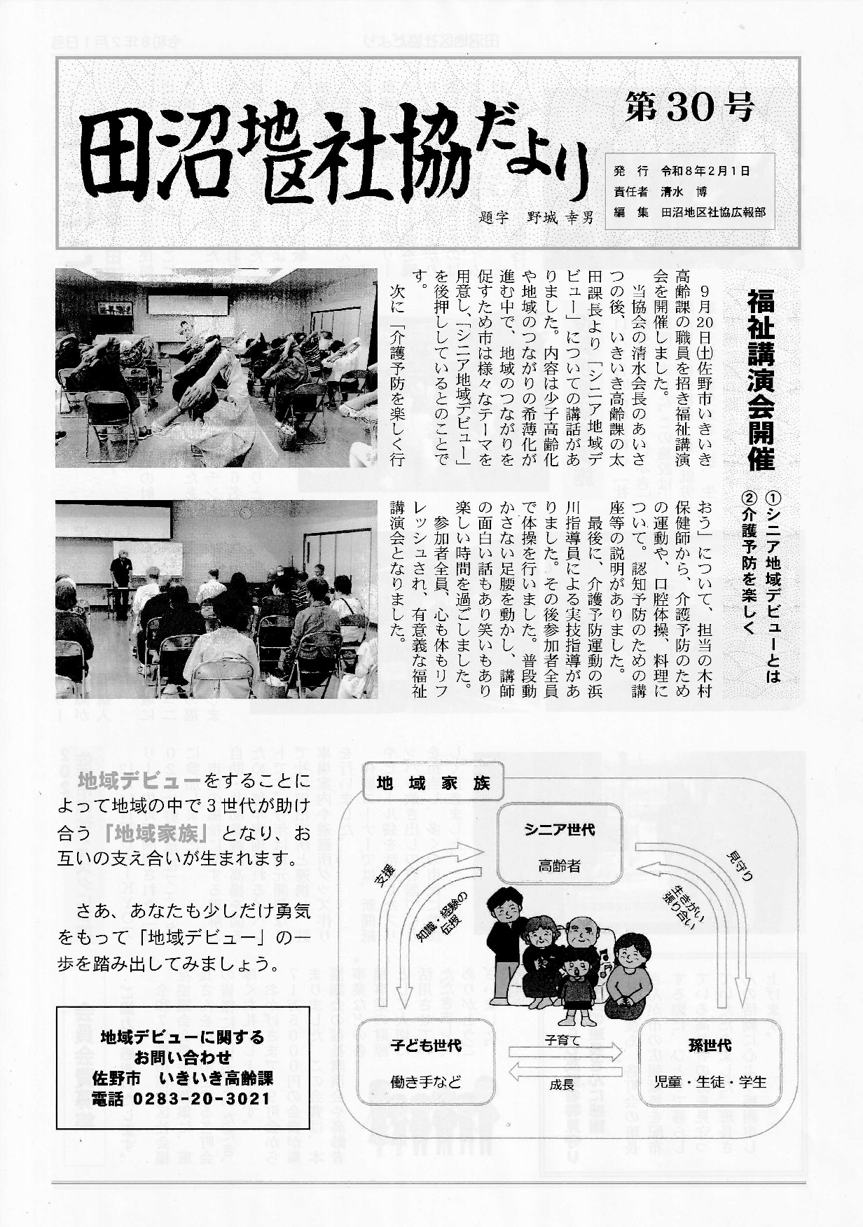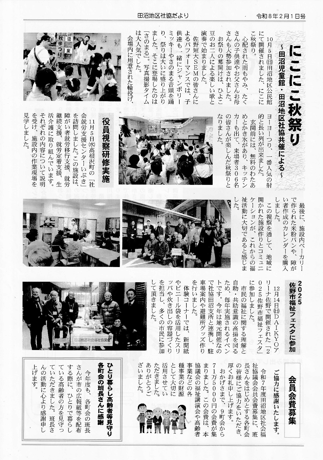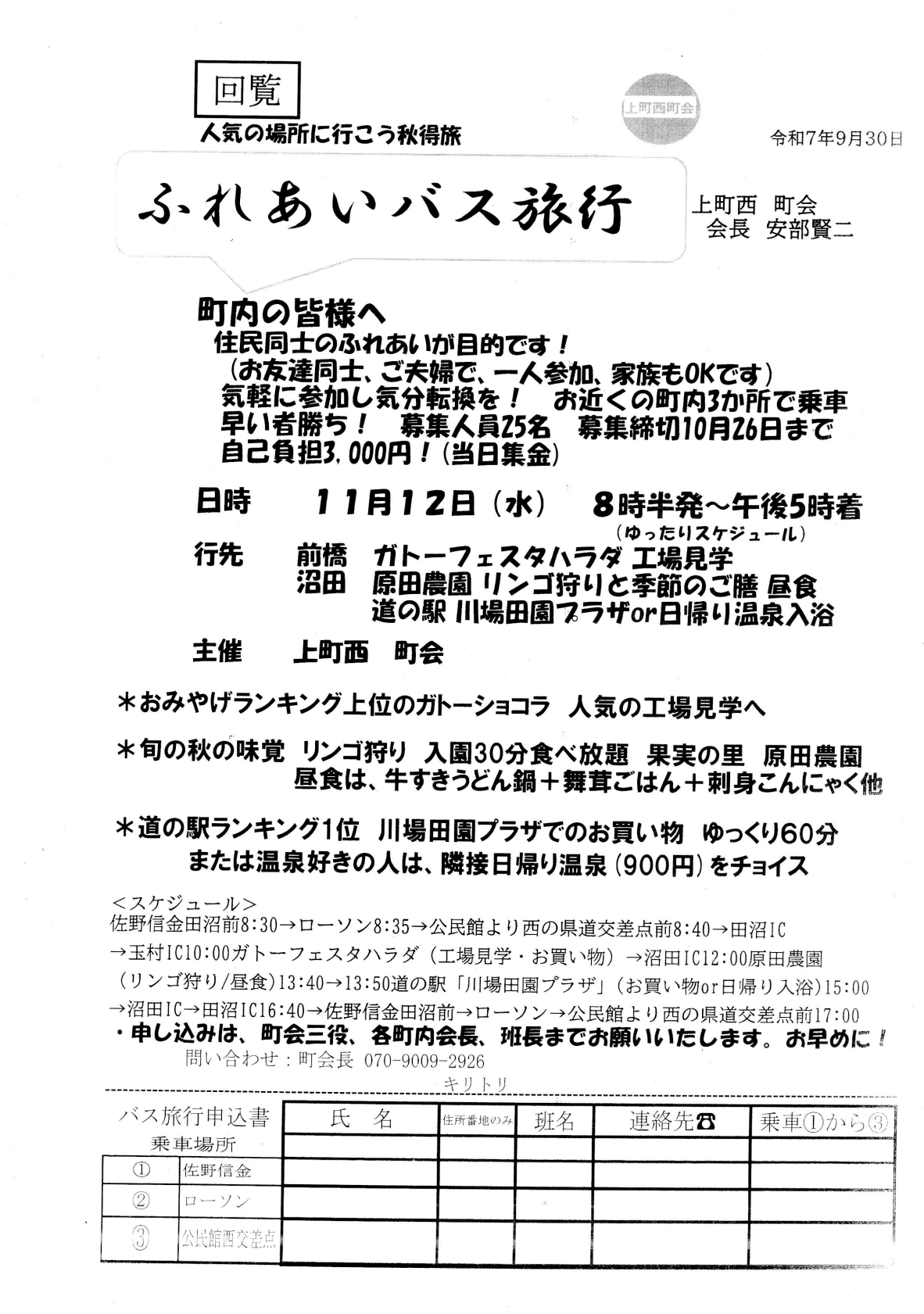 町内の地域情報の共有化。さらに治安・防災も大事なことです。自警団防災会が大活躍しています。また子供たちの通学時見守りも育成会を中心に実施されています。孤独死の事例がみられます。高齢化社会は進んでいます。お互いに助け合いながら、ふれあいを大切に,住み良い町づくりにしましょう。