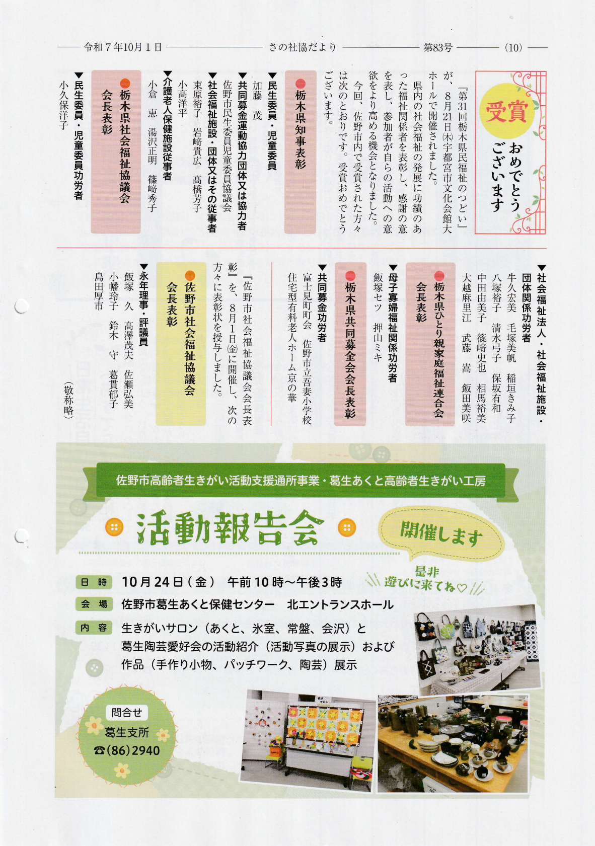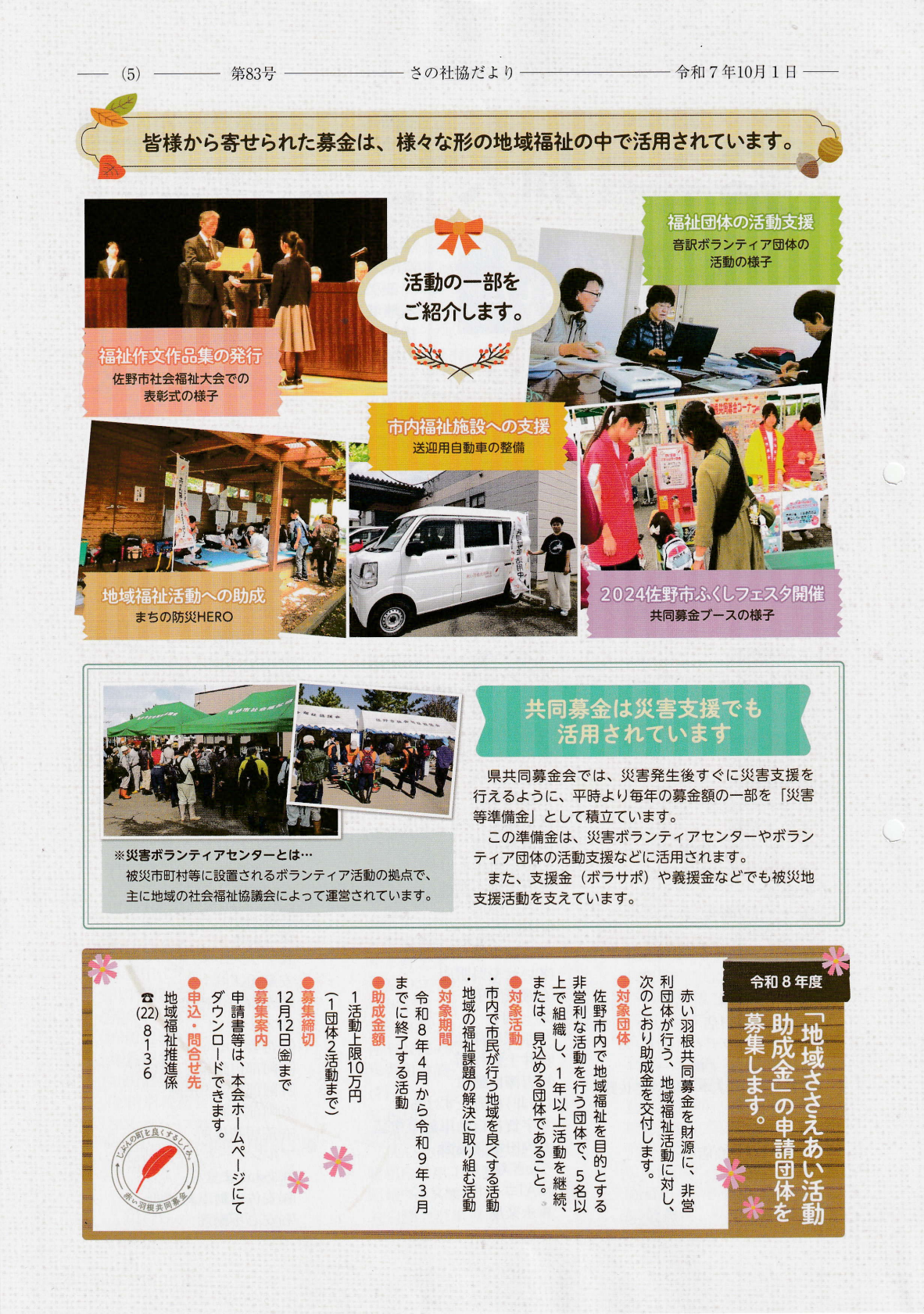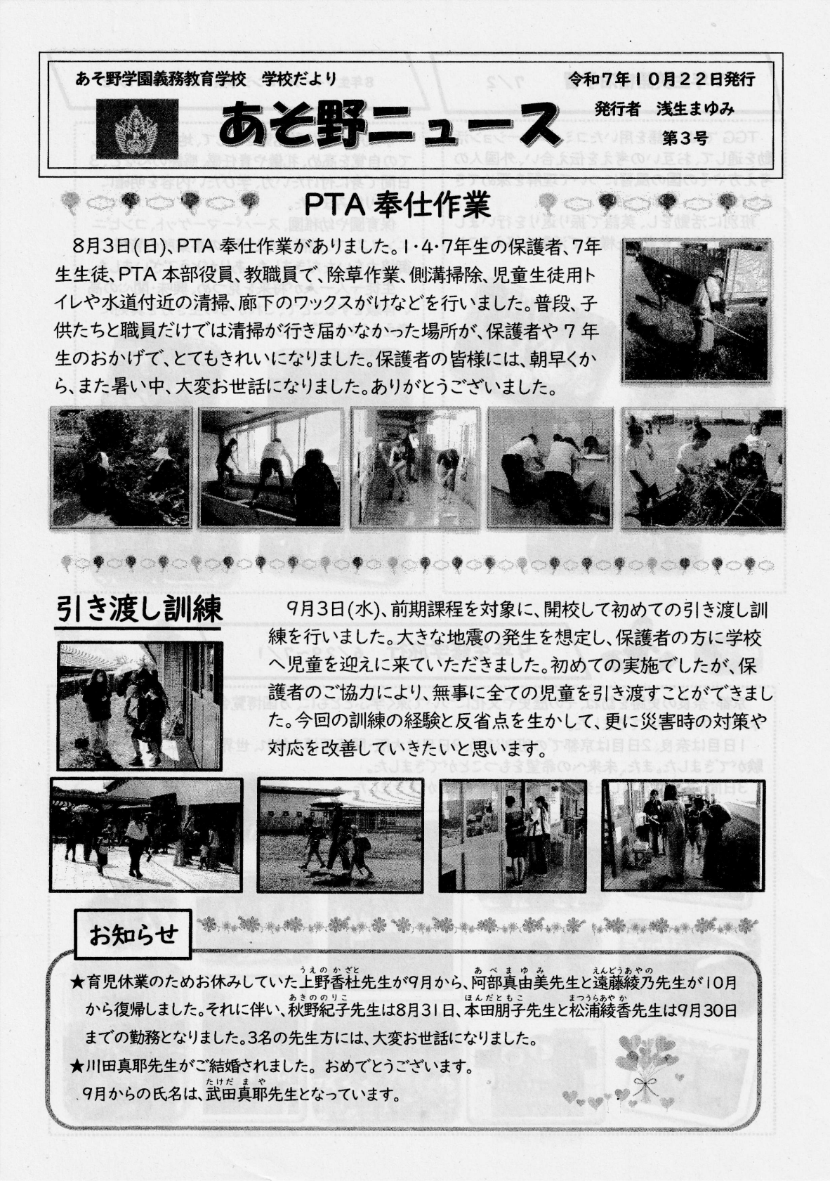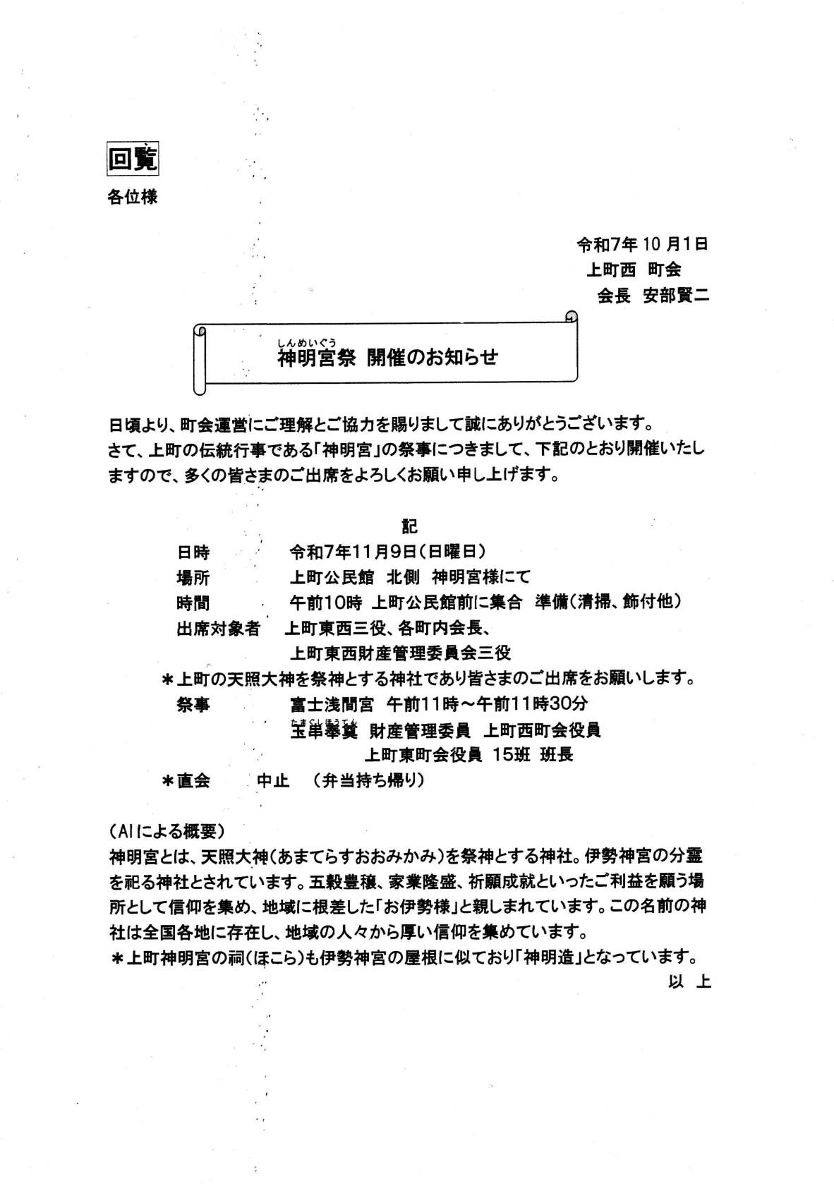 町内の地域情報の共有化。さらに治安・防災も大事なことです。自警団防災会が大活躍しています。また子供たちの通学時見守りも育成会を中心に実施されています。孤独死の事例がみられます。高齢化社会は進んでいます。お互いに助け合いながら、ふれあいを大切に,住み良い町づくりにしましょう。