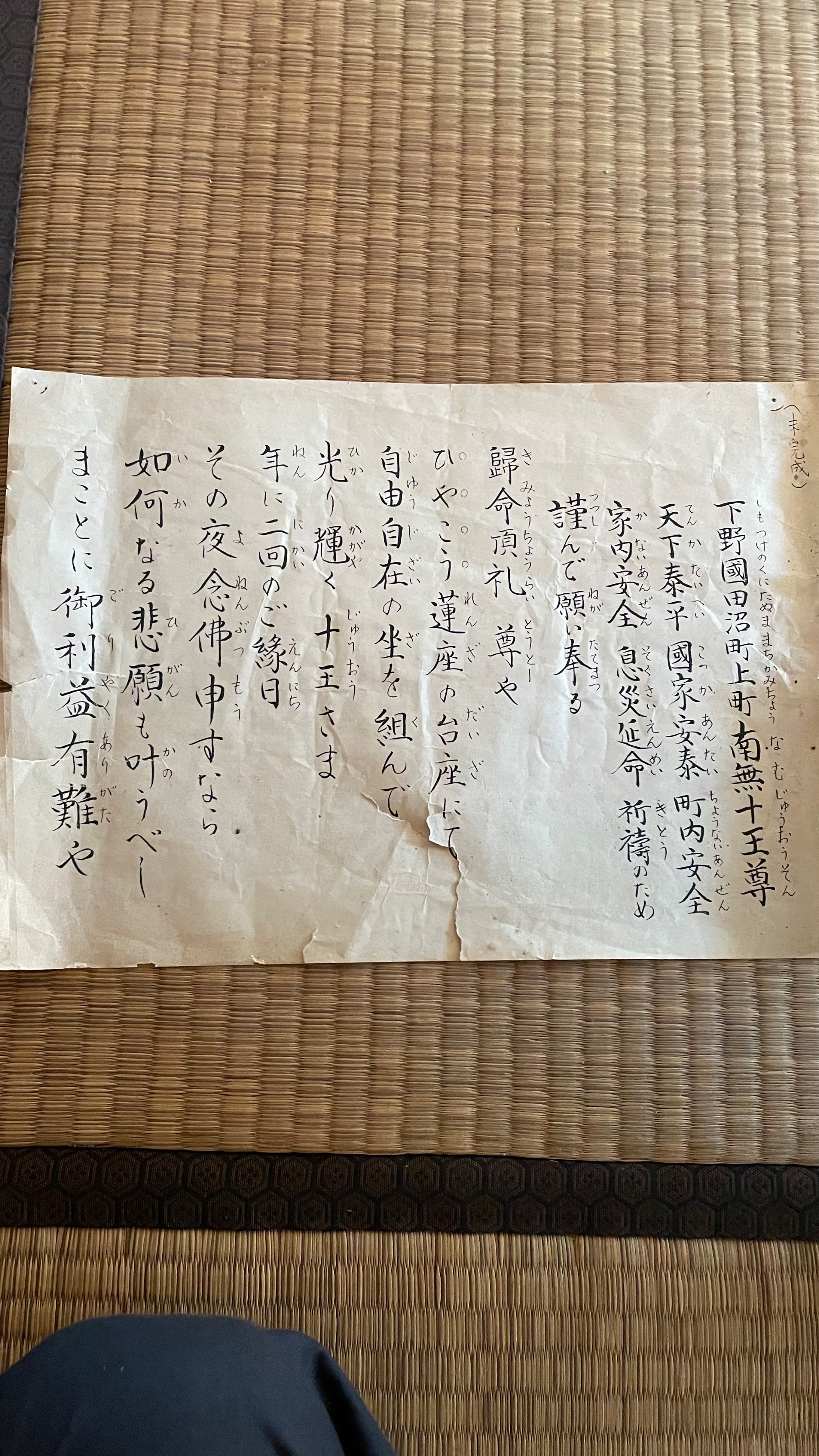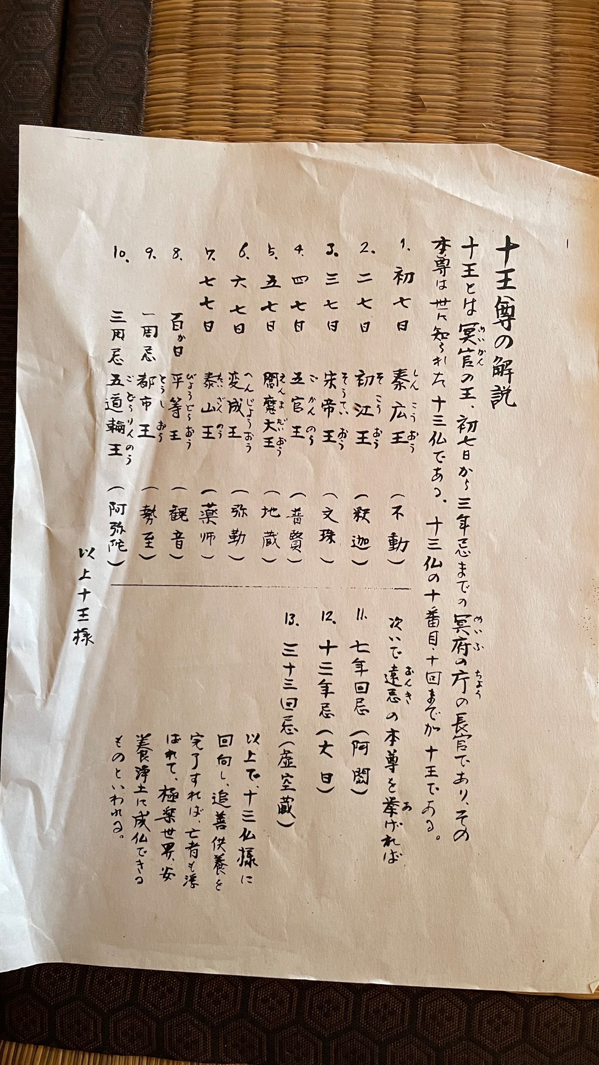 下記資料は、十王堂に保管されていたものです。十王尊の解説と下野國田沼上町南無十王尊について記載されています。