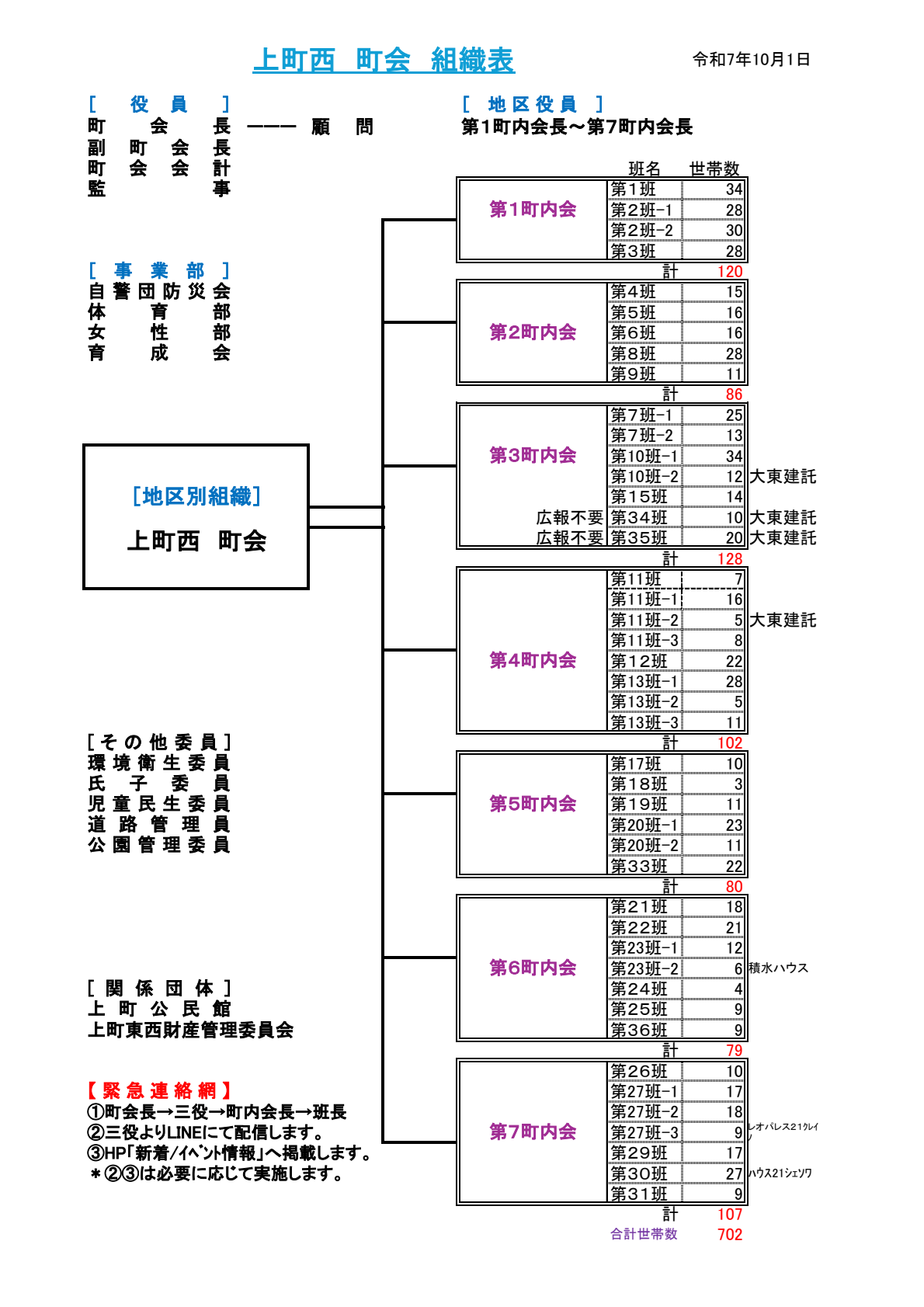 地区役員:第1町内会長~第7町内会長