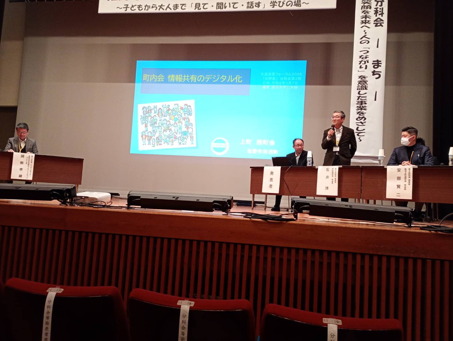 分科会の第2部 地域の笑顔を未来へ ~人の「つながり」を意識した事業をめざして~14時30分から当町会で取り組みしている事例を町会長、副町会長の2名で発表しました。