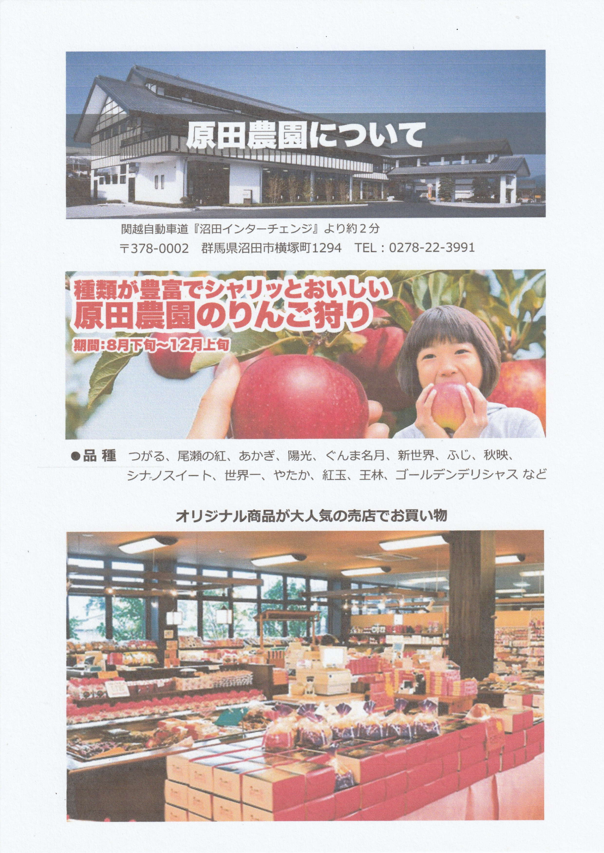 ハラダで工場見学と買物、次に沼田の原田農園で昼食とリンゴ狩り、最後が川場田園プラザで温泉に入る人と園内散策等でした。